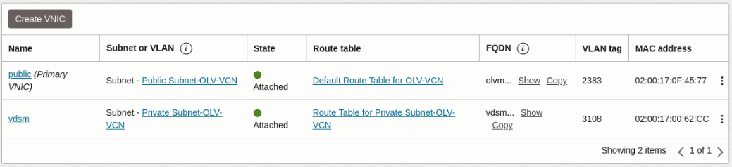 ol9-vm1Select the VM network interface from the nic1 drop-down list.