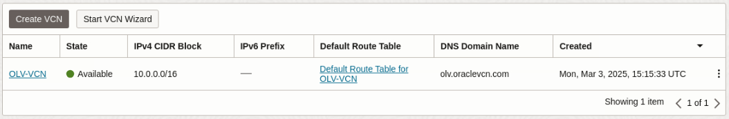 Click the name of the Virtual Cloud Network (VCN) in the table.